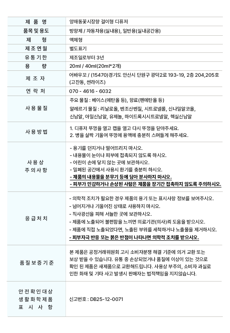 양재동꽃시장향 : 걸이형 디퓨저 20ml / 40ml