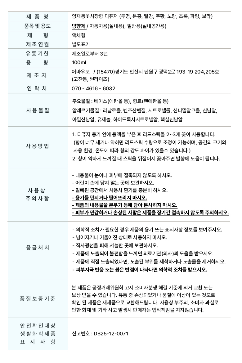 안전기준 적합확인 신고번호(자가검사번호) 또는 안전확인대상 생활화학제품 승인번호